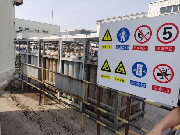 臺州市黃巖順豐氣體有限公司位于臺州市黃巖江口街道道頭村,公司成立于2009年12月,是一家專業從事氧氣、氮氣空分生產及氬氣、二氧化碳充裝的有限責任公司,公司法定代表人為黃道國。公司擁有KDON-500/1000空分設備1套和YPON-200/1100液化設備及氣瓶充裝設備,生產能力為年產氧氣66萬瓶、氮氣13萬瓶、液氧2260噸、液氮10900噸和年充裝二氧化碳9.5萬瓶、氬氣6萬瓶。公司還設有100m3液氮貯罐2只(其中1只停用),100m3液氧貯罐1只,50m3液體二氧化碳貯罐2只,50m3液氬貯罐1只,用于儲存公司低溫液體物料。 企業于2018年委托浙江泰達安全技術有限公司出具了《臺州市黃巖順豐氣體有限公司年產氧氣66萬瓶、氮氣13萬瓶、液氧2260噸、液氮10900噸和年充裝二氧化碳9.5萬瓶、氬氣6萬瓶項目安全現狀報告》(編號:XZPJ[2018]0028),并于2020年5月18日進行了延期,重新取得了安全生產許可證(編號:(ZJ)WH安許證字[2020]-J-2102),許可范圍:年產:氧氣66萬瓶、氮氣13萬瓶、液氧2260噸、液氮10900噸,年充裝:二氧化碳9.5萬瓶、氬氣6萬瓶。有效期至: 2023年5月17日。