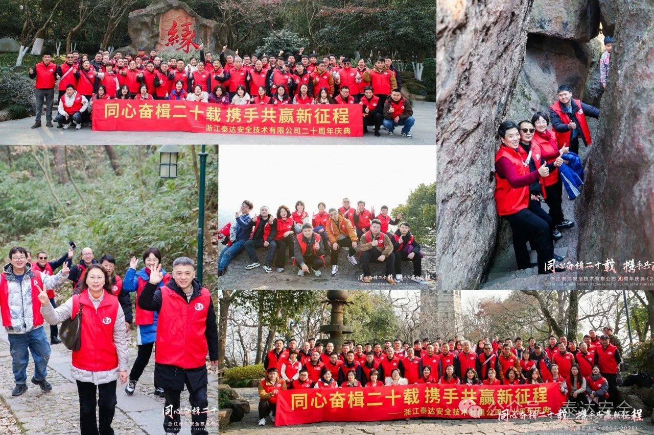 2025年1月20日,浙江泰達安全技術有限公司迎來了重要的里程碑——公司二十周年華誕,公司舉行了2025年度工作暨年度先進表彰會議、聽取了《尋覓人生的意義》的專題講座、登寶石山迎新活動及公司成立二十周年慶典晚宴等,以豐富多彩的活動共同慶祝浙江泰達過去二十年的輝煌,展望以后二十年的愿景。